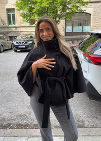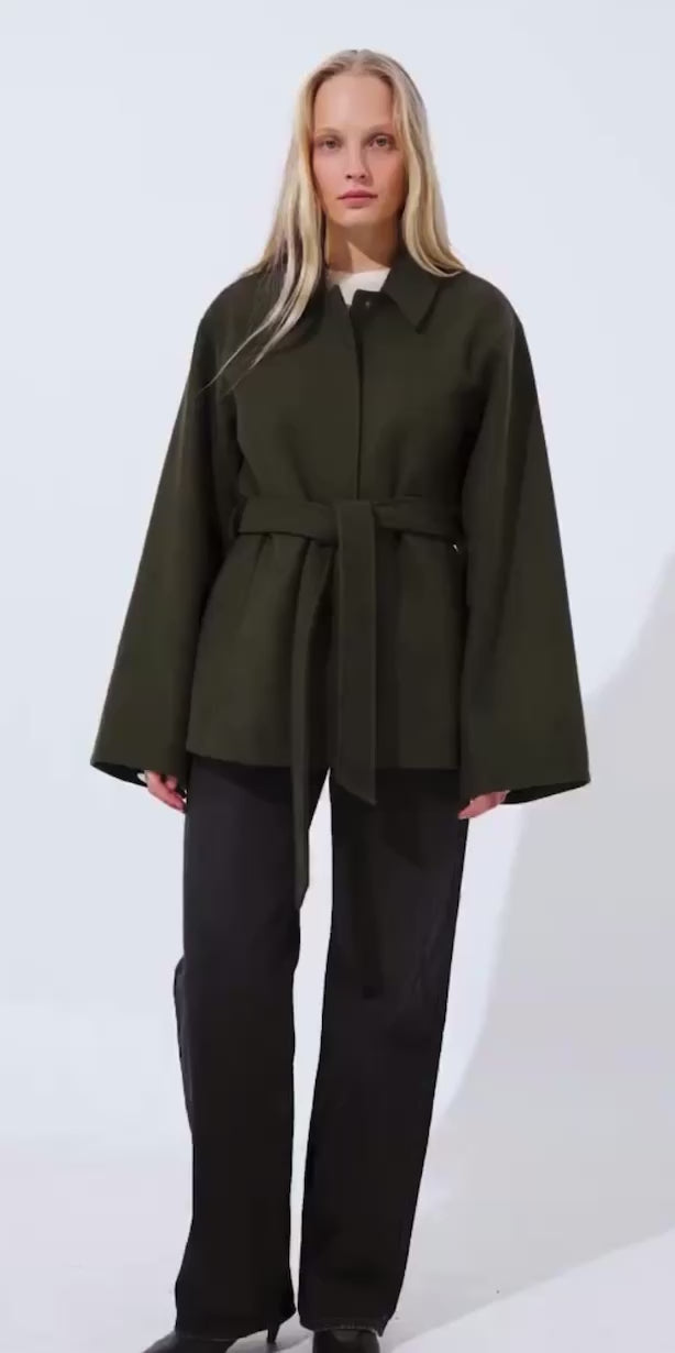 Sa coupe structurée, ceinte à la taille, crée instantanément une silhouette harmonieuse et féminine. Le tissu épais et doux enveloppe le corps d’une chaleur réconfortante, tout en restant d’un chic absolu.